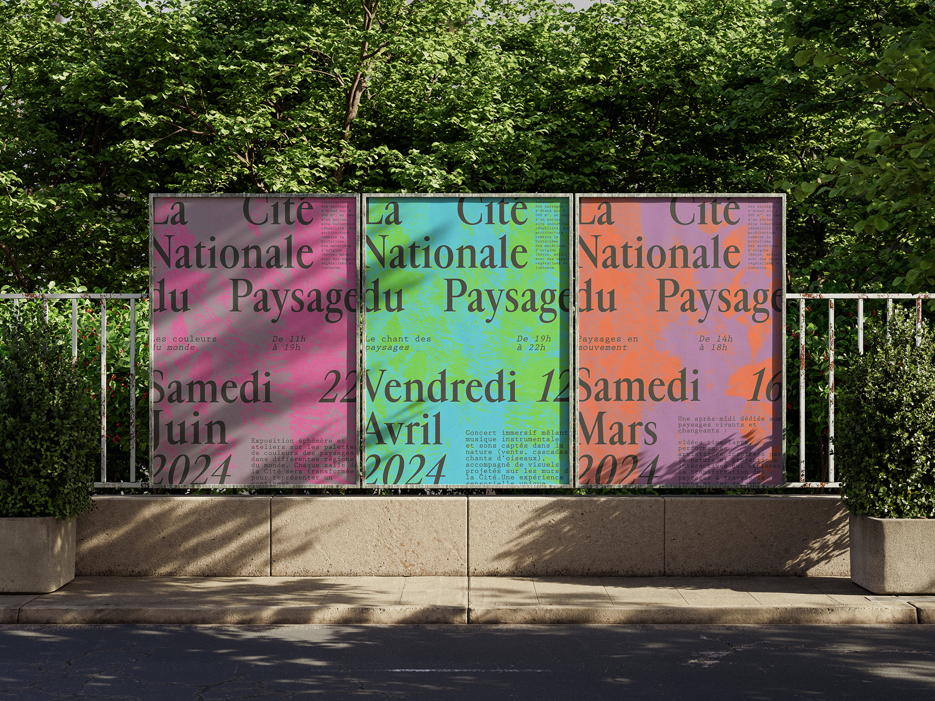 Affiches fictives déclinées sur trois jours, elles utilisent des formes abstraites, des couleurs vives et une composition éclatée pour traduire la complexité et l’irrégularité des paysages, ainsi que leur caractère fragmentaire.